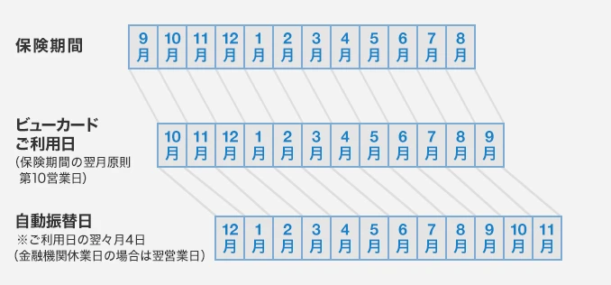 ■ 保険期間とビューカードご利用日・自動振替日との関係